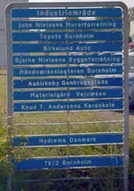 Henvisningsskilte i galger opsat i byer og erhvervsområder