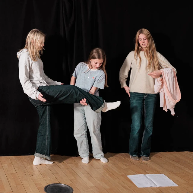 Sammen med en gruppe jævnaldrende udforsker vi bevægelse, dans, improvisation, timing og replikker – og giver krop, stemme og fantasi plads.